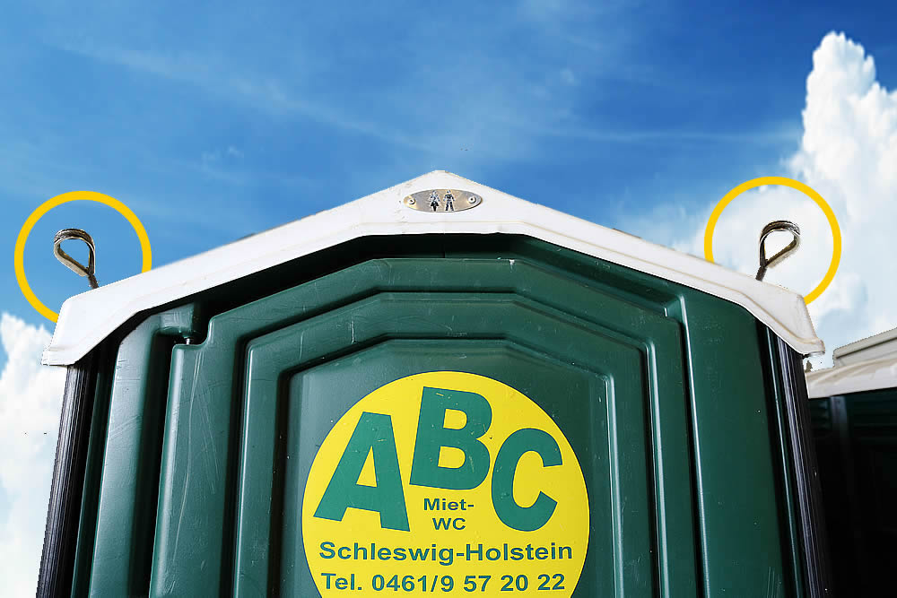 Befindet sich der Aufstellort auf einem Dach, muss sichergestellt sein, dass ein Kran vor Ort ist damit unsere Servicefahrer die Toilette reinigen können!